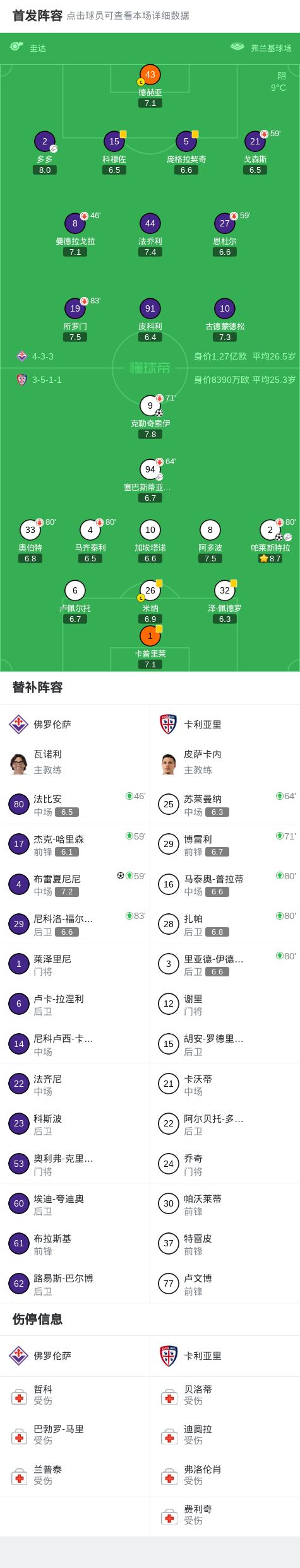 第31分钟,先拔头筹,克勒奇索伊头球破门,卡利亚里1-0
